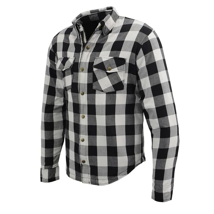 Get ready to hit the road in style and safety with our Men's Armored Checkered Flannel Biker Shirt w/ Aramid® by DuPont™ Fibers. This shirt is a perfect combination of fashion and protection, designed for motorcycle enthusiasts like you. With its durable cotton/poly blend outer shell and reinforced shoulders and elbows, it offers unmatched durability and resistance. The removable CE pads in the shoulder, elbows, and back provide personalized protection, while the hidden front zipper and snap-close front ensure a secure fit. Stay connected with the electronic media pocket and keep your essentials close in the dual side concealed weapon and ammo pocket. Ride with confidence and style in this exceptional biker shirt.