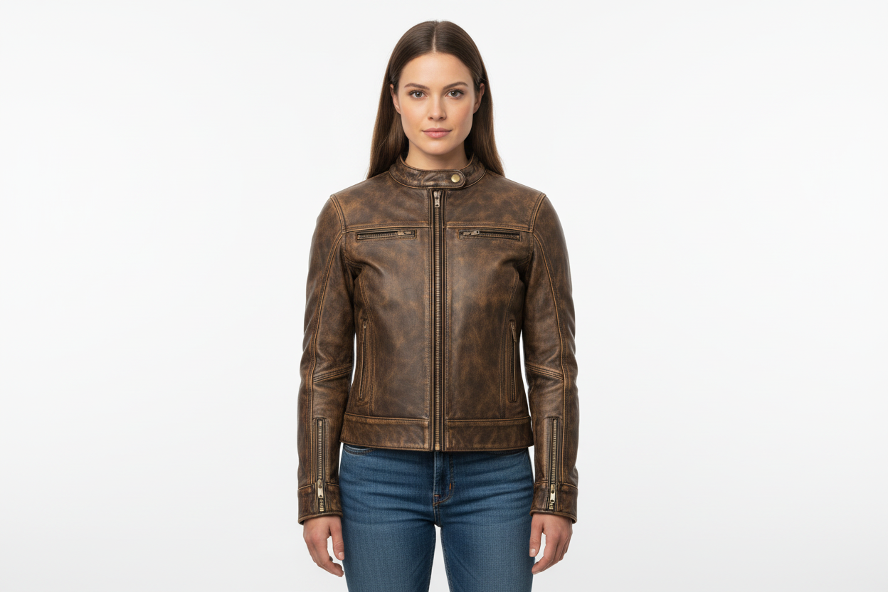 The Justice Rider Leather Jacket for Ladies is a premium motorcycle jacket designed for both style and functionality. Made from durable naked cowhide leather, this jacket offers exceptional quality and longevity. It features a front zipper closure with a band collar design, along with multiple pockets for convenient storage. The jacket also includes a ventilation system with zipper closures, reflective piping for increased visibility, and adjustable features such as zippered cuffs and side zippers.