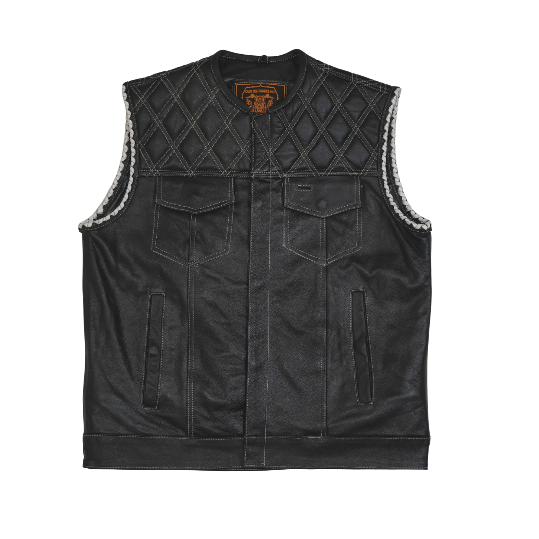 Upgrade your riding gear with the Leather Vest for Men, where quality and practicality converge seamlessly.