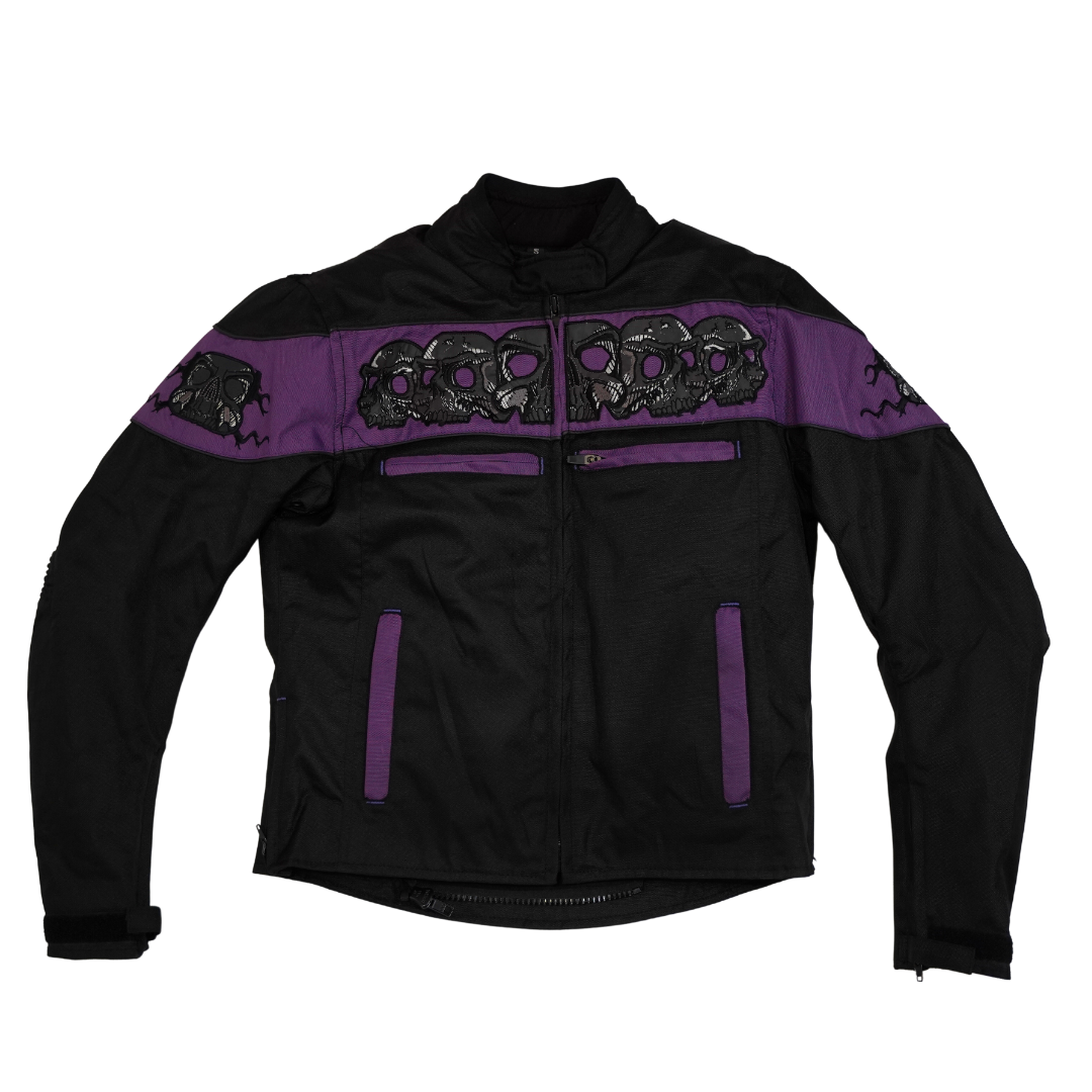 Discover a harmonious blend of style and functionality with our Purple Skull Textile Jacket. Elevate your riding journey with a jacket that's as unique as your individuality.