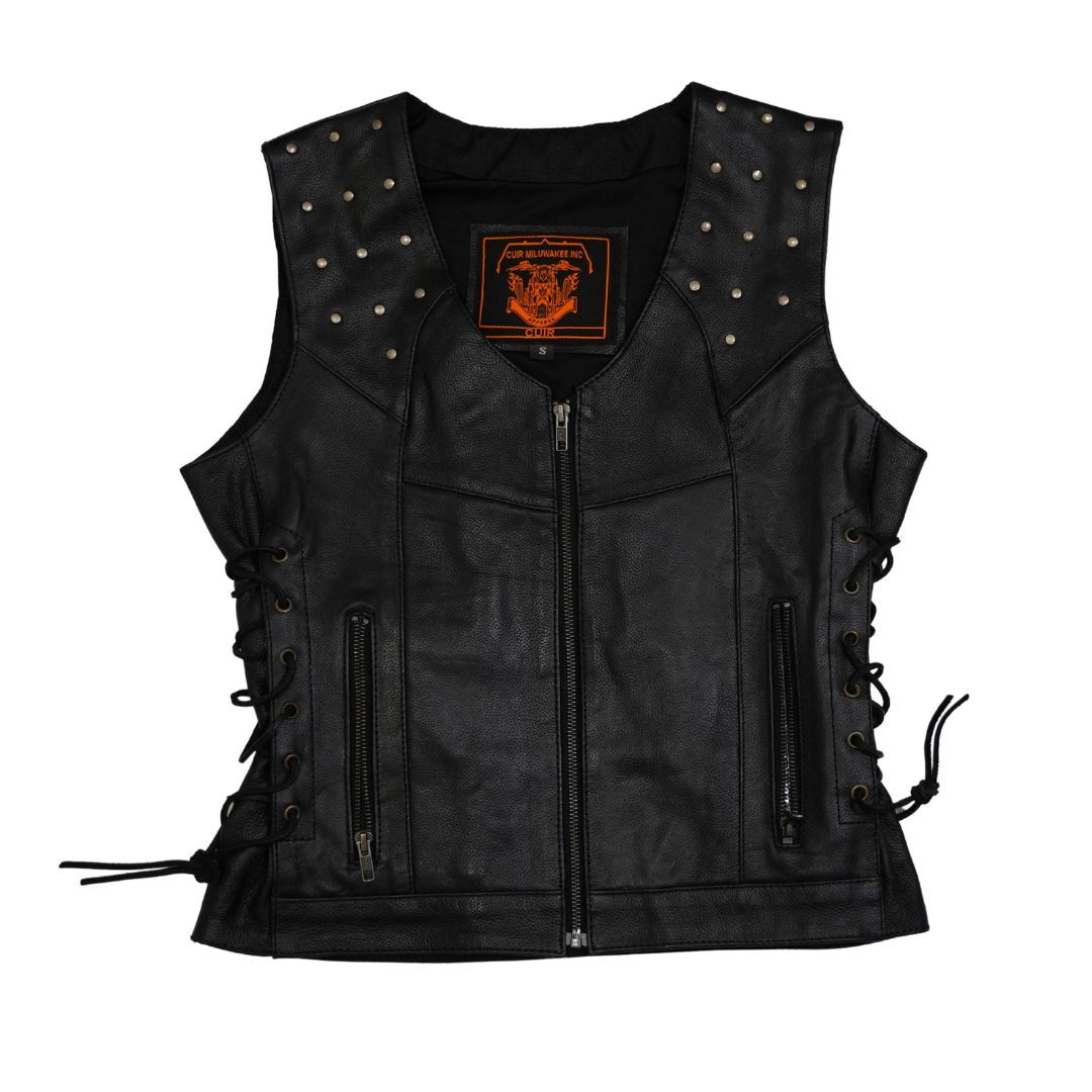 Whether you're cruising down the highway or exploring scenic routes, the Studded Ladies Vest adds a touch of rock 'n' roll to your riding experience, making a statement wherever your journey takes you.